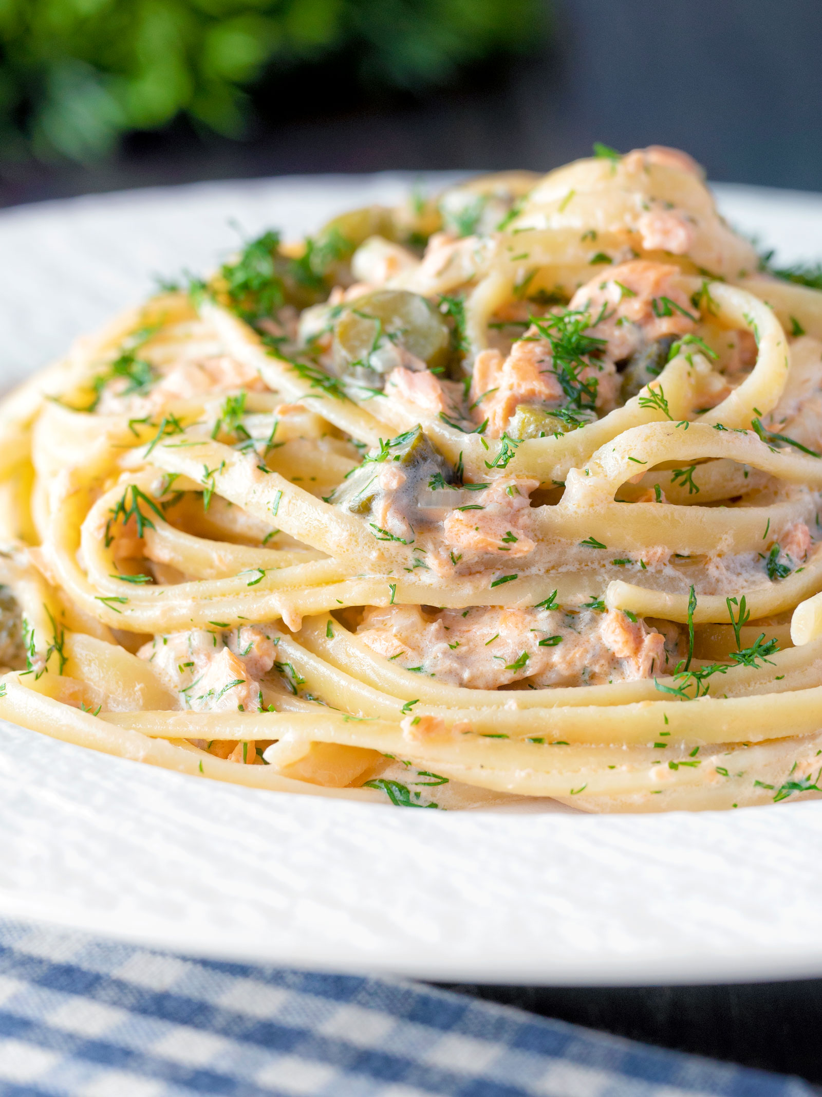 Canned Salmon Pasta With Creme Fraiche Krumpli